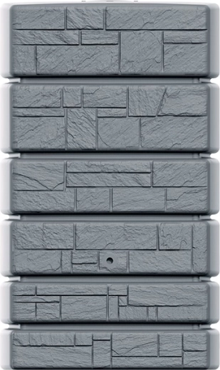 Een esthetische en functionele regenton met een inhoud van 500 l en een elegant design met steenimitatie. Biedt vier aansluitingen op de regenpijp, een bovenopening met deksel en twee schroefdraadopeningen voor een kraan of een snelkoppeling voor een slang. Een ideale keuze voor moderne tuinen en terrassen met focus op waterbesparing en stijl.