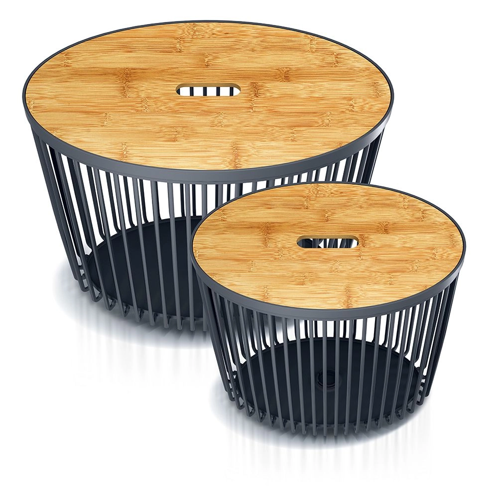 De CLUBO-mandenset biedt een slimme oplossing voor schoonmaken en organiseren. Dankzij de twee formaten (30 en 55 l) pas je de opbergruimte eenvoudig aan je actuele behoeften aan – van wasgoed en dekens tot kinderspeelgoed. De antracietkleurige behuizing wordt aangevuld met elegante bamboe deksels die de inhoud verbergen en je interieur een natuurlijk accent geven.
