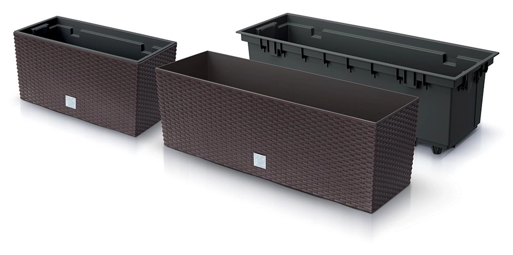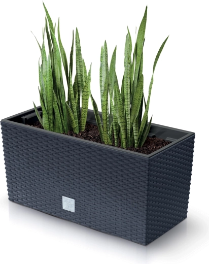 De stijlvolle bloembak met realistische ratantextuur biedt een natuurlijke uitstraling en een praktische oplossing voor het kweken van bloemen en kruiden. Dankzij de binneninzet is werken met het substraat snel en schoon, terwijl het geïntegreerde afvoersysteem met stop helpt om wortelverzadiging te voorkomen.
