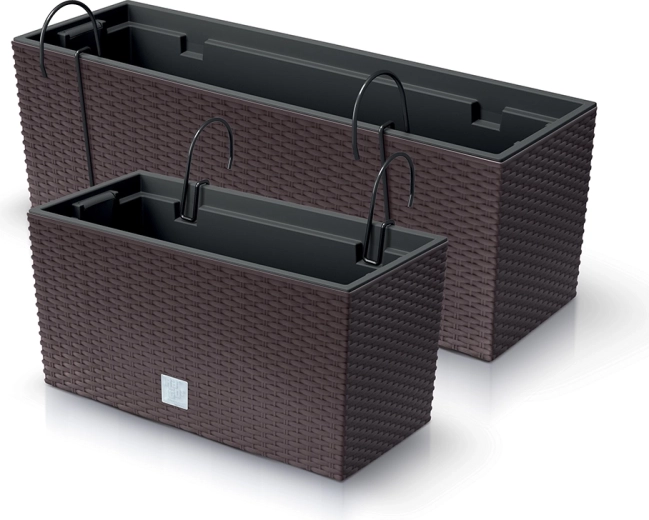 Creëer een groene oase op je balkon of terras met deze elegante hangbloembak met een realistische rattanvlecht-imitatie. Dankzij de compacte afmetingen en haken voor de balustrade bespaar je ruimte en voeg je tegelijk een decoratief element toe dat past bij zowel moderne als natuurlijke buitenruimtes.