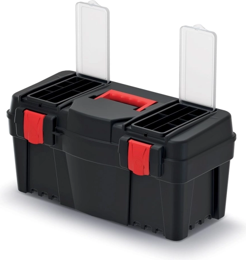 De praktische kunststof gereedschapskoffer CALIBER biedt betrouwbare bescherming tegen stof en vocht, een ergonomisch handvat voor comfortabel dragen en een interne organizer voor overzichtelijke opslag van kleine onderdelen. Dankzij een draagvermogen van 11,5 kg is hij ideaal voor doe-het-zelvers en professionals, terwijl de clipsluiting de inhoud tijdens transport veilig beschermt.
