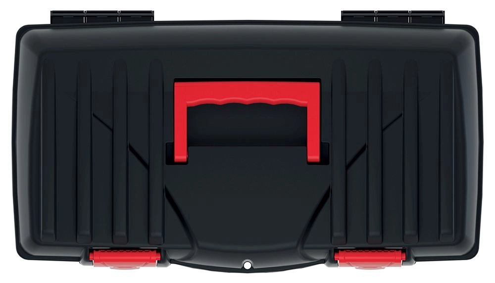 Dankzij het ergonomische handvat ligt hij ook bij volle belasting comfortabel in de hand. De interne organizer zorgt voor orde in klein toebehoren, schroeven of bitdoppen, en het clipsysteem houdt het deksel tijdens transport stevig gesloten.