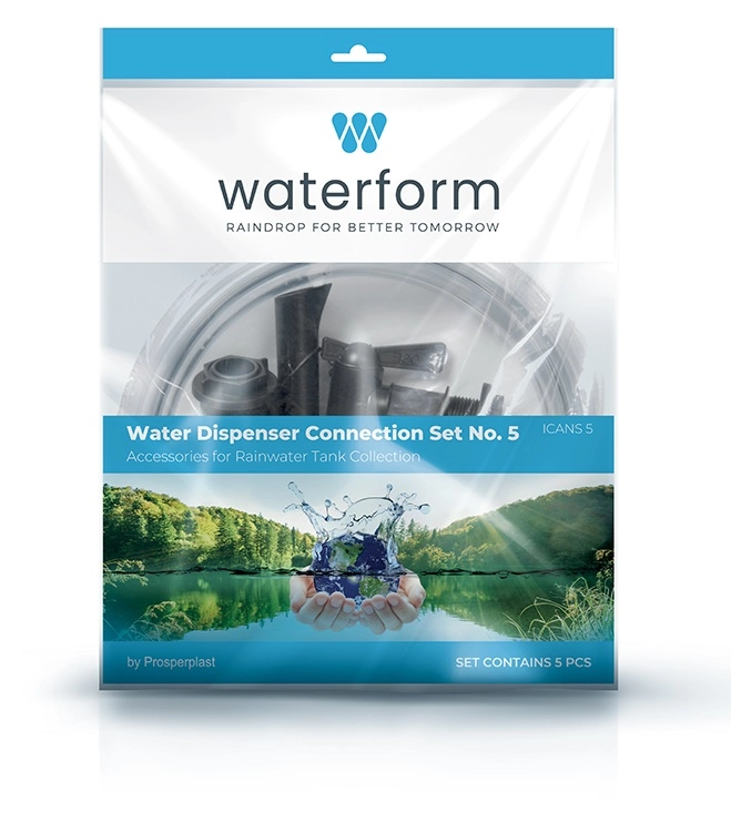Praktische set voor het gemakkelijk aftappen van regenwater uit de ton. Bevat een kraan met afdichting en moer, een aansluiting, een transparante tuinslang, een slanguiteinde en een houder voor het uiteinde. Het uiteinde is compatibel met de tonnen MAZE, SMOOTH, PERUNO en TUBE, de kraan is universeel compatibel met alle Waterform-tonnen.