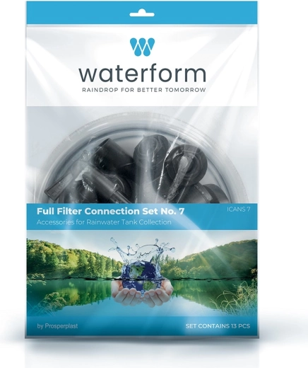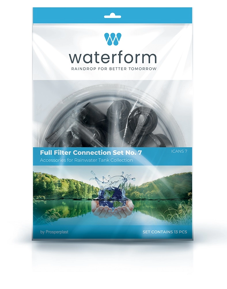 Universele 13-delige set voor aan- en afvoer van regenwater uit een regenton, voor een snelle en probleemloze installatie. Bevat alles wat u nodig hebt voor het aansluiten van de ton, het tappen van water met een kraan, het koppelen met slangen en bescherming tegen vuil dankzij het externe grofvuilfilter.