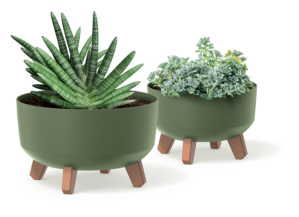Mat aardsgroen en strakke lijnen zorgen voor een tijdloze look die de schoonheid van planten benadrukt en past bij zowel Scandinavische als minimalistische stijlen.