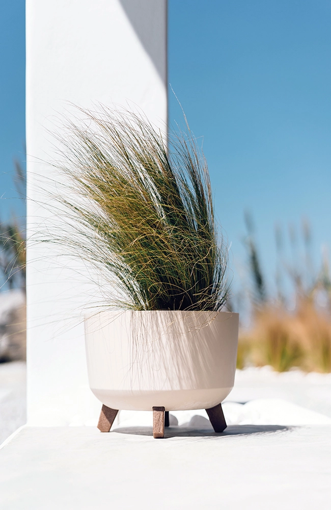 De aardse groentint en het gladde oppervlak sluiten aan bij minimalistische en natuurlijke interieurs en terrassen. Creëer stijlvolle arrangementen zonder compromissen.