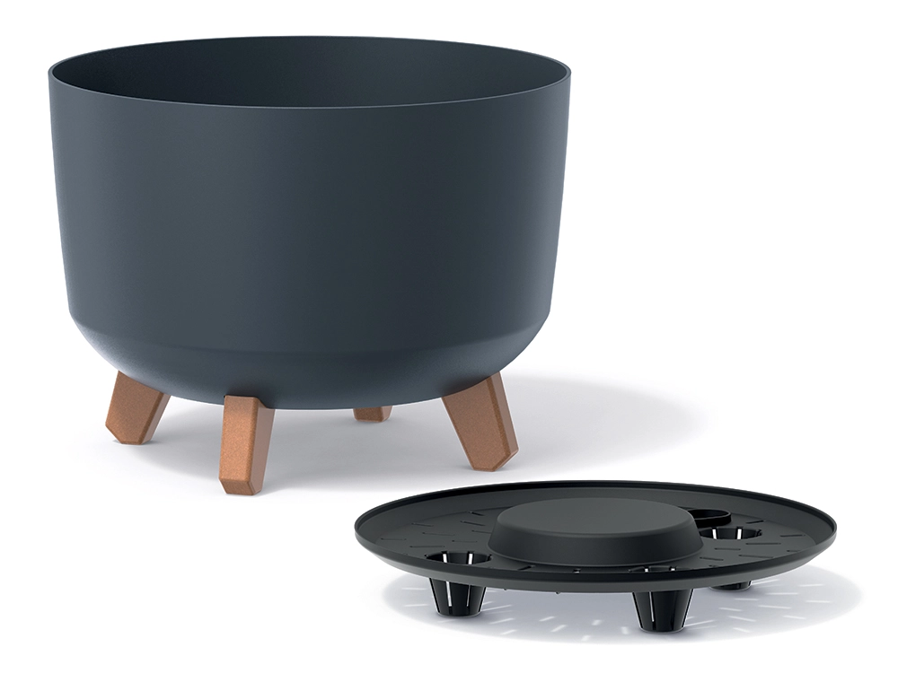 Dankzij de afneembare pootjes in houtdecor staat de pot stabiel, is hij beter geventileerd en oogt hij luchtig in elke ruimte. De geïntegreerde inzet op de bodem ondersteunt de juiste vochtigheid van het substraat, wat de gezonde groei van planten bevordert en het onderhoud vereenvoudigt.