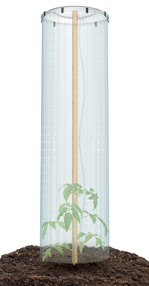 Pinnen en negen klemmen houden de kap stevig op zijn plaats. Ideaal voor het telen van tomaten met ondersteuning en voor de bescherming van jonge scheuten.