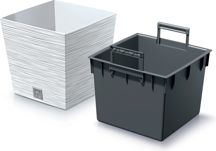 Inclusief een uitneembare binneninzet met praktische, inklapbare handgrepen, die het verpotten, verplaatsen en water geven vergemakkelijkt. De gevormde bodem ondersteunt een gezonde wortelgroei en de stabiele vierkante basis zorgt voor een veilige plaatsing op vloer en terras.