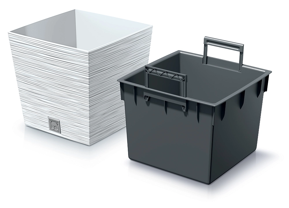 De binneninzet met twee inklapbare handgrepen maakt snel beplanten, eenvoudig verplaatsen en schoon water geven zonder rommel mogelijk.