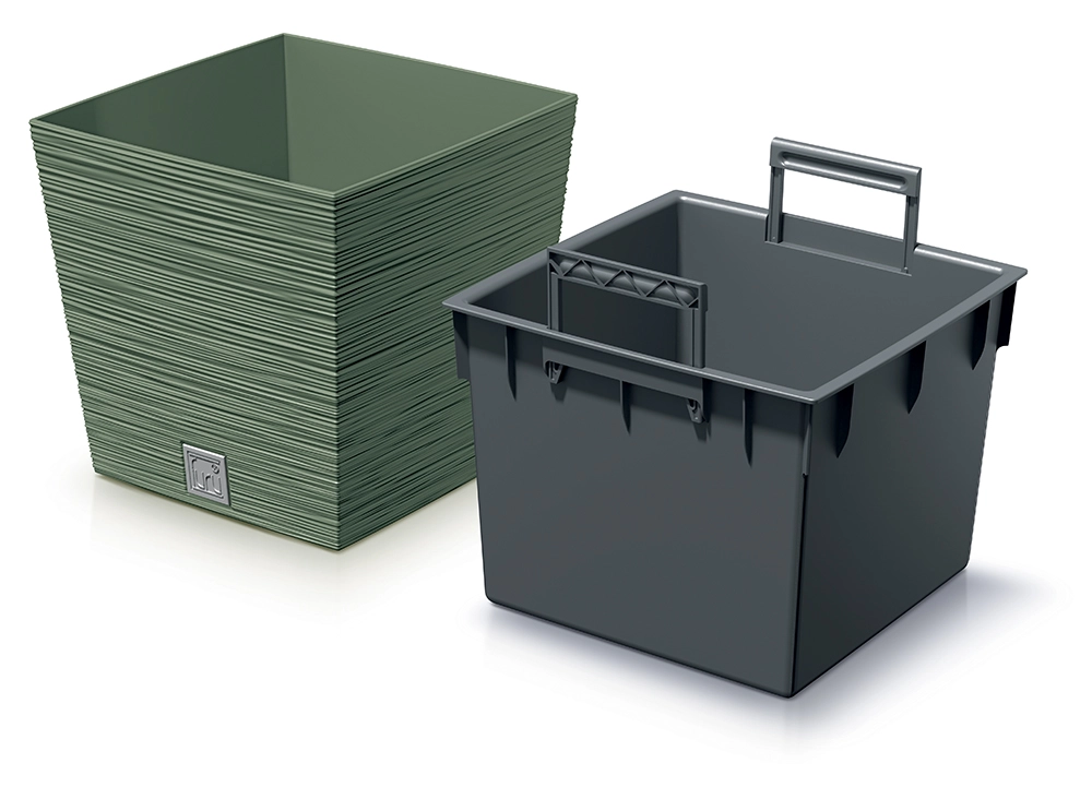 De inzetmand met handgrepen maakt verplanten comfortabel, water geven eenvoudig en zorgt voor snelle, schone handling.