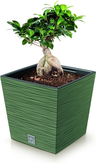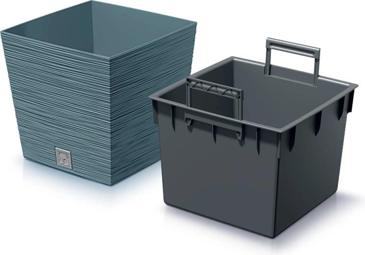 Dankzij het hoogwaardige kunststof is de bloempot licht, duurzaam en gemakkelijk te reinigen. Het geribbelde oppervlak zorgt voor een premium uitstraling en maskeert bovendien kleine vuildeeltjes. De binnenbak met geïntegreerde handgrepen maakt snelle plantwissels en onderhoud zonder rommel mogelijk.