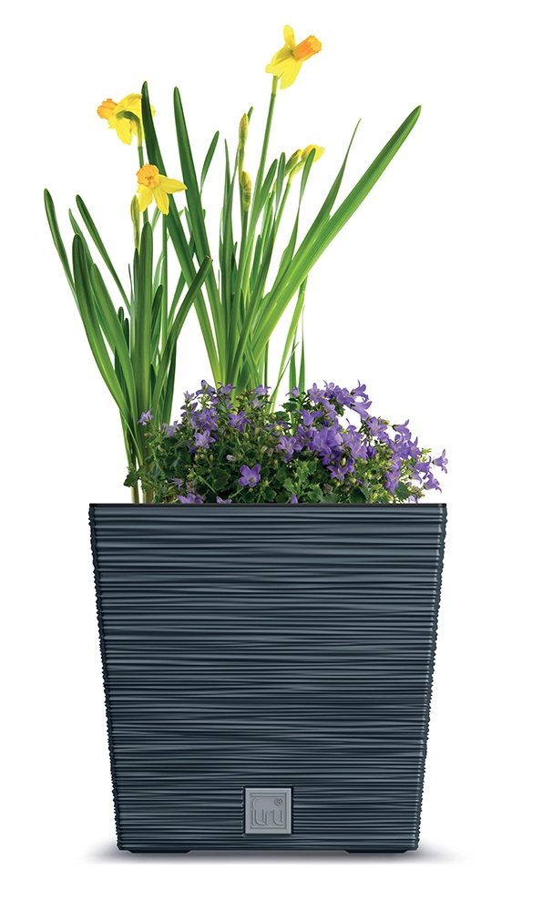 De Furu Square Low bloempot 24 cm in antraciet combineert een tijdloze uitstraling met een praktische uitvoering. De geribbelde textuur geeft een moderne touch, terwijl het duurzame kunststof zorgt voor een licht gewicht en lange levensduur, zowel binnen als buiten. De binneninzet met handgrepen maakt verplanten en verplaatsen van planten eenvoudig en schoon.