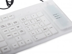 Ontdek het witte siliconen toetsenbord ideaal voor gebruikers die op zoek zijn naar een flexibel en duurzaam invoerapparaat. Dit toetsenbord is gemaakt van hoogwaardig siliconen, wat zorgt voor zijn stof- en waterbestendigheid. Het is zeer dun en licht, wat het gemakkelijk maakt om mee te nemen en op te bergen. Het antislipoppervlak zorgt voor stabiel gebruik, terwijl de stille toetsen geschikt zijn voor een stille werkomgeving.