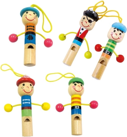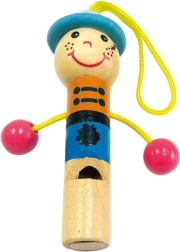 Het houten kinderfluitje, versierd met beschilderde figuurtjes, is niet alleen een leuk maar ook een praktisch cadeau. Het fluitje is gemaakt van massief hout en gelakt met onschadelijke verven, wat zorgt voor een lange levensduur en veiligheid voor kinderen. Dankzij het aangename, luide geluid kan het worden gebruikt bij diverse activiteiten, zoals voetbal of voor signaaldoeleinden.