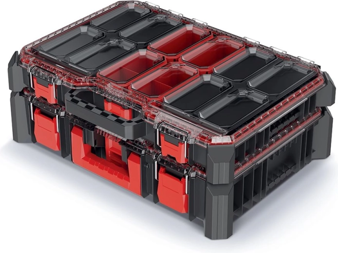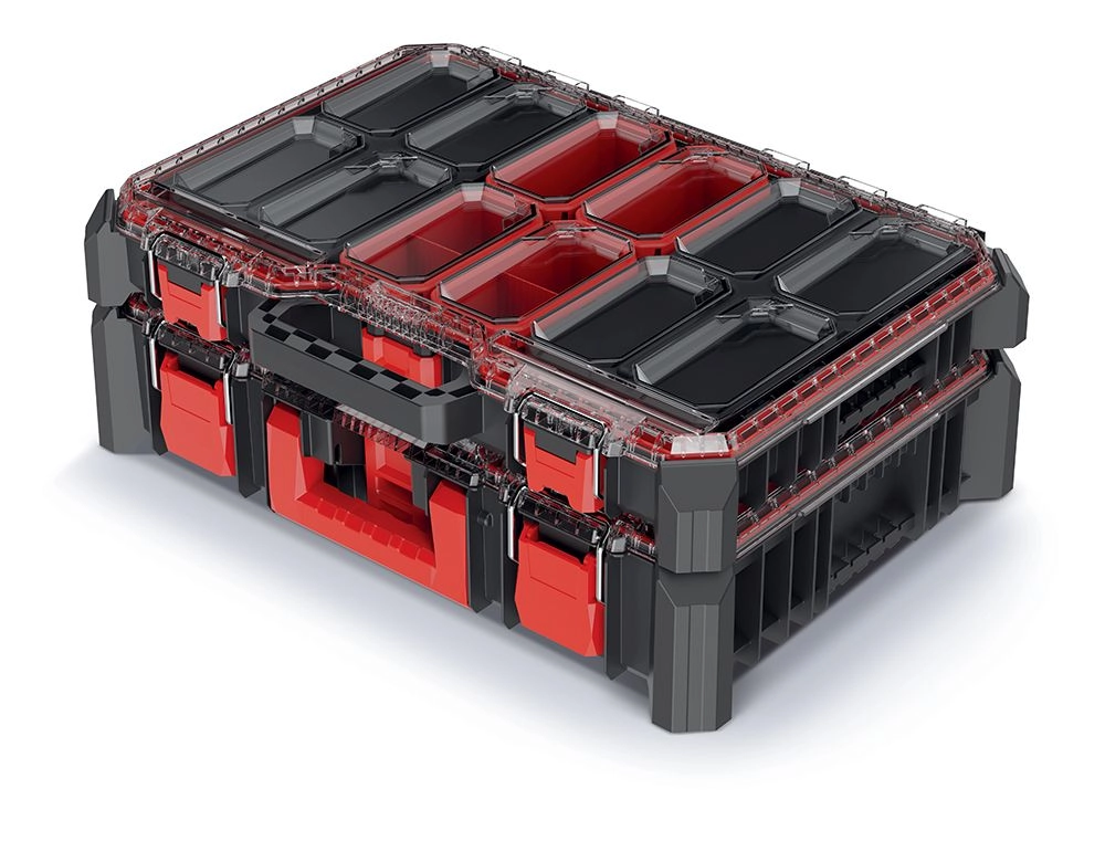 De organizers zijn ontworpen voor dagelijks gebruik – ze combineren functionele ruimte voor kleine componenten en ook robuustere onderdelen. Praktische tussenschotten houden de inhoud op zijn plaats, een transparant deksel (indien aanwezig) zorgt voor snelle oriëntatie en stevige clips beschermen de opgeborgen items tijdens transport.