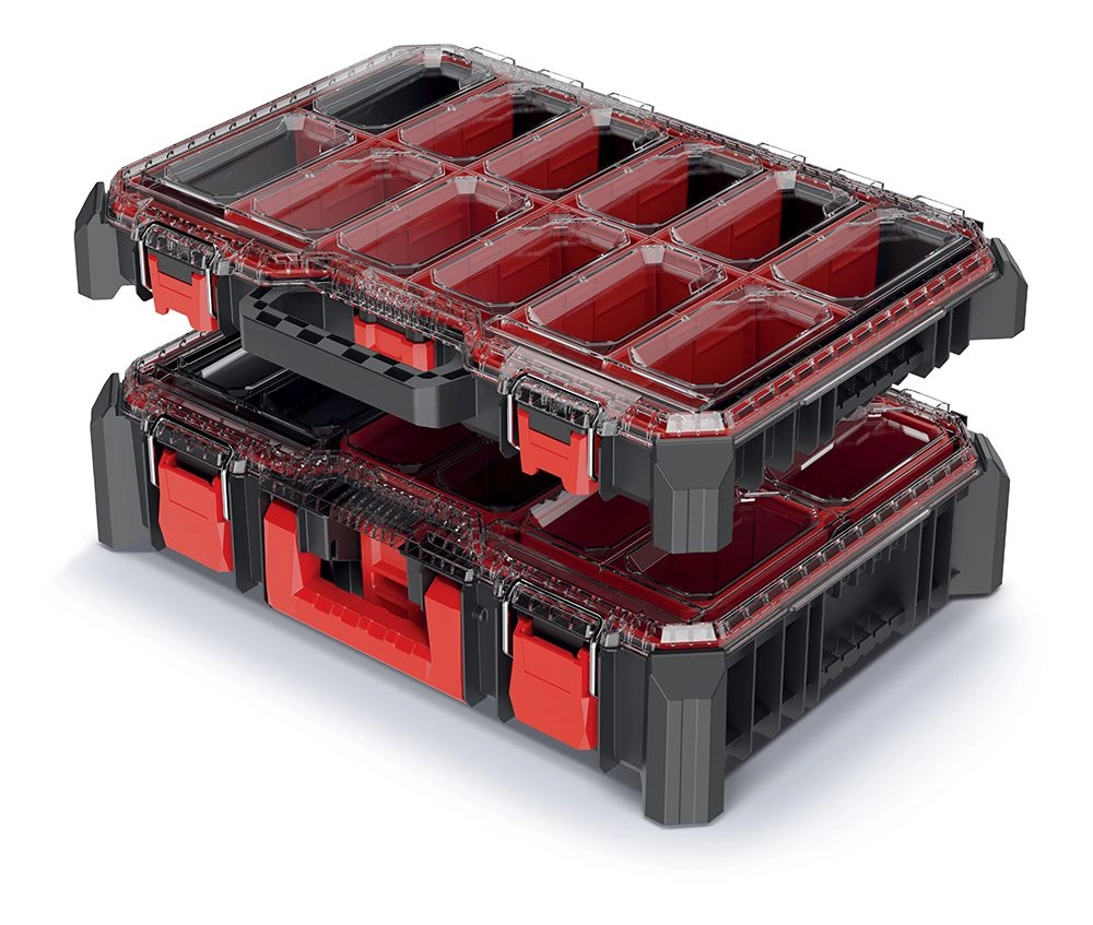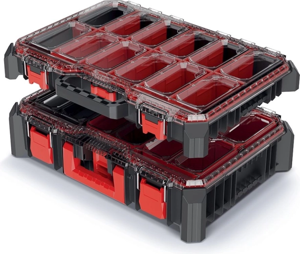 De organizers zijn geschikt voor schroeven, pluggen, spijkers, bits, boren of creatieve benodigdheden. Dankzij de modulaire indeling pas je de binnenruimte eenvoudig aan actuele behoeften aan en houd je zonder moeite alles op orde.