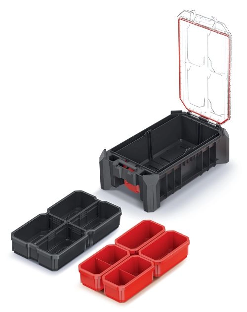 - Flexibele indeling – uitneembare tussenschotten voor verschillende typen en groottes onderdelen