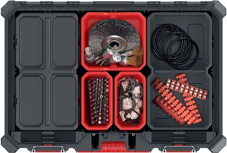 De binnenruimte bestaat uit uitneembare vakken en verdelers die je aanpast aan je actuele behoeften. De organizer maakt deel uit van de MSX-serie en kan modulair gekoppeld worden met het X BLOCK-systeem via de X BLOCK BRIDGE. Zo krijg je een flexibel, uitbreidbaar systeem voor gebruik in de werkplaats, in de auto en op de bouwplaats.