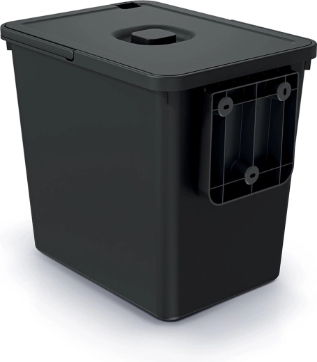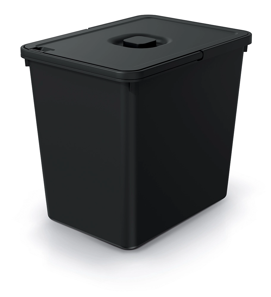 Praktische vuilnisbak met een inhoud van 23 l in gerecycled zwart, ideaal voor keukens, kantoren en badkamers. Biedt compacte afmetingen, duurzaam kunststof en een kanteldeksel FLAP voor gemakkelijk inwerpen van afval. Dankzij het modulaire ontwerp combineert u hem eenvoudig met andere bakken uit de Systema-serie voor efficiënte afvalscheiding. Gedeeltelijk gemaakt van gerecyclede materialen voor een milieuvriendelijkere keuze.