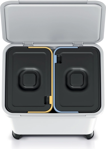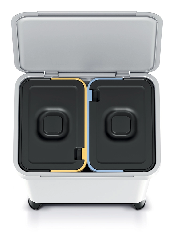 • Efficiënt scheiden: twee afzonderlijke 10 l inzetstukken met kleurcodering.