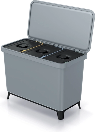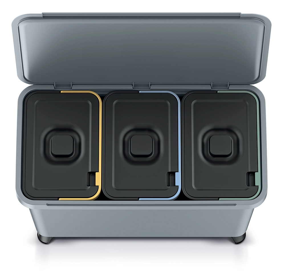- Intuïtieve scheiding: geel, blauw en groen deksel voor duidelijke onderscheiding van afvalfracties.
