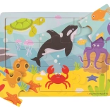 Duik in de fascinerende onderwaterwereld met deze prachtig kleurrijke houten puzzel. Kinderen genieten van het puzzelen en ontwikkelen tegelijkertijd hun ruimtelijk inzicht en fijne motoriek. Zodra alle stukjes zijn samengevoegd, verschijnt er een mooie zeescène vol verhalen.