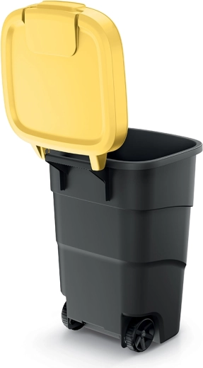 - Antraciet container, geel deksel