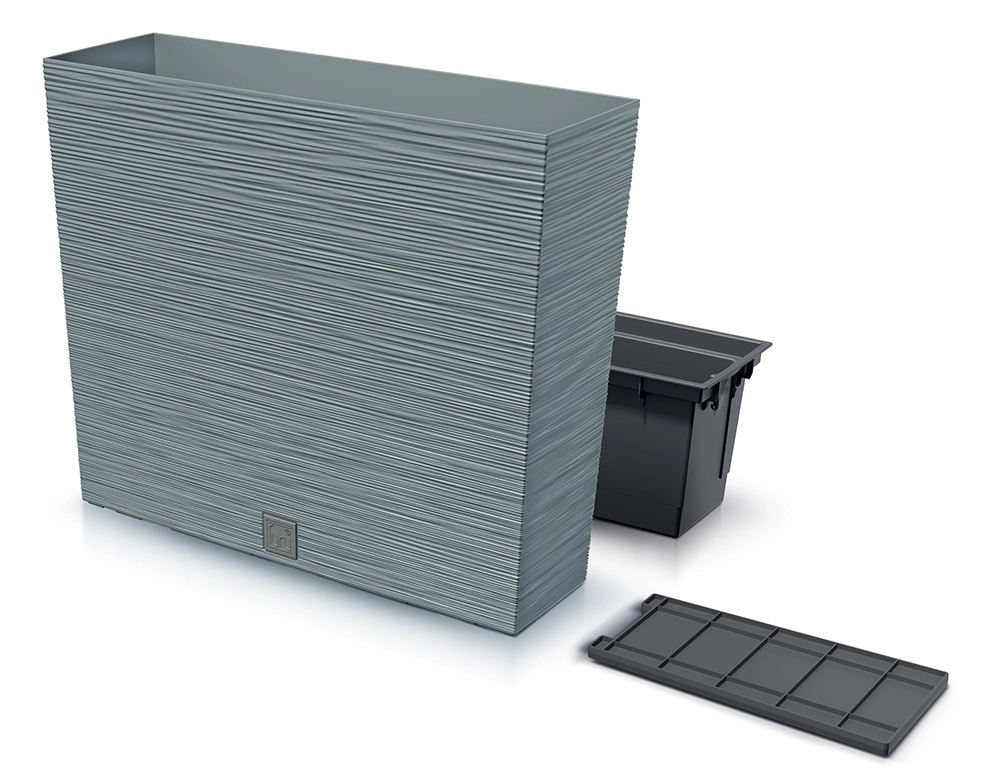 De horizontale ribbelstructuur geeft de plantenbak een premium uitstraling en combineert moeiteloos met diverse stijlen terrassen, balkons en interieurs.