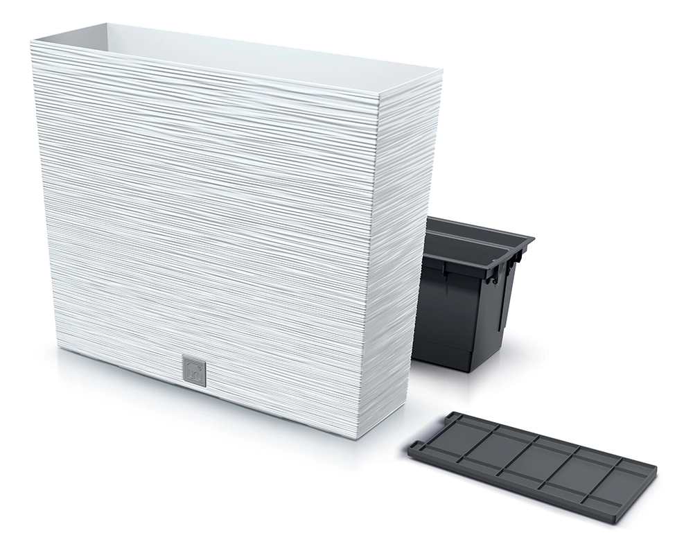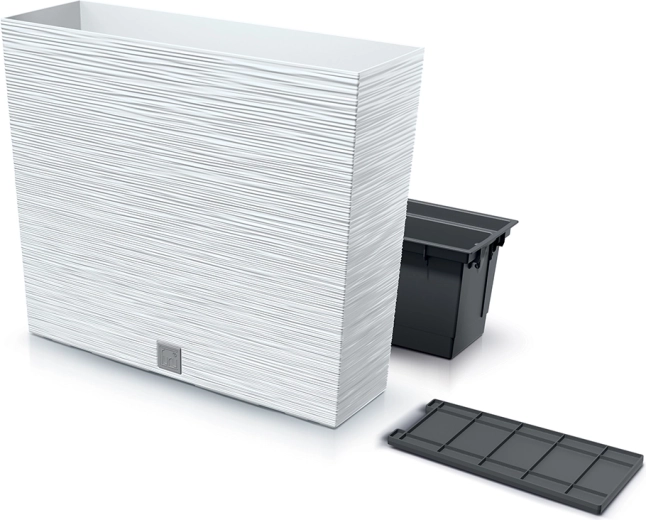 De elegante rechthoekige bloembak met opvallende geribde structuur is een perfecte aanvulling voor balkon, terras en entree. Dankzij de lichte maar stevige kunststof is hij bestand tegen vorst en weersinvloeden, waardoor hij geschikt is voor gebruik het hele jaar door, buiten én binnen.