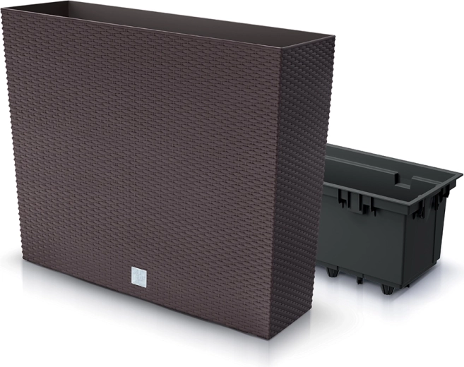 De hoge plantenbak Rato Case combineert modern design met functionaliteit. De rattantextuur geeft uw ruimte een natuurlijke uitstraling, terwijl de duurzame kunststof met UV-bescherming zorgt voor een lange levensduur en kleurechtheid, zowel binnen als buiten.