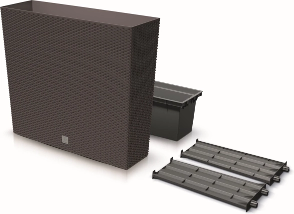 Breng stijl en functionaliteit in je ruimte met de hoge Rato Case bloembak in mocca. Het oppervlak met een realistische ratanstructuur oogt esthetisch en past natuurlijk in modern wonen, cafés en restaurantterrassen. De duurzame kunststof zorgt voor een lange levensduur, kleurechtheid en probleemloos gebruik buiten en binnen.