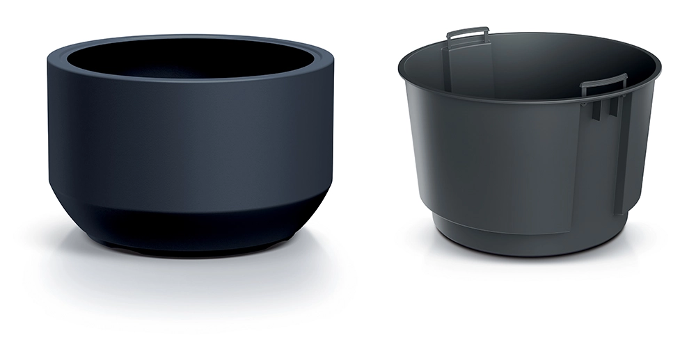 De uitneembare inzet met drainage-elementen vereenvoudigt de verzorging, voorkomt overbewatering en maakt snel onderhoud mogelijk.