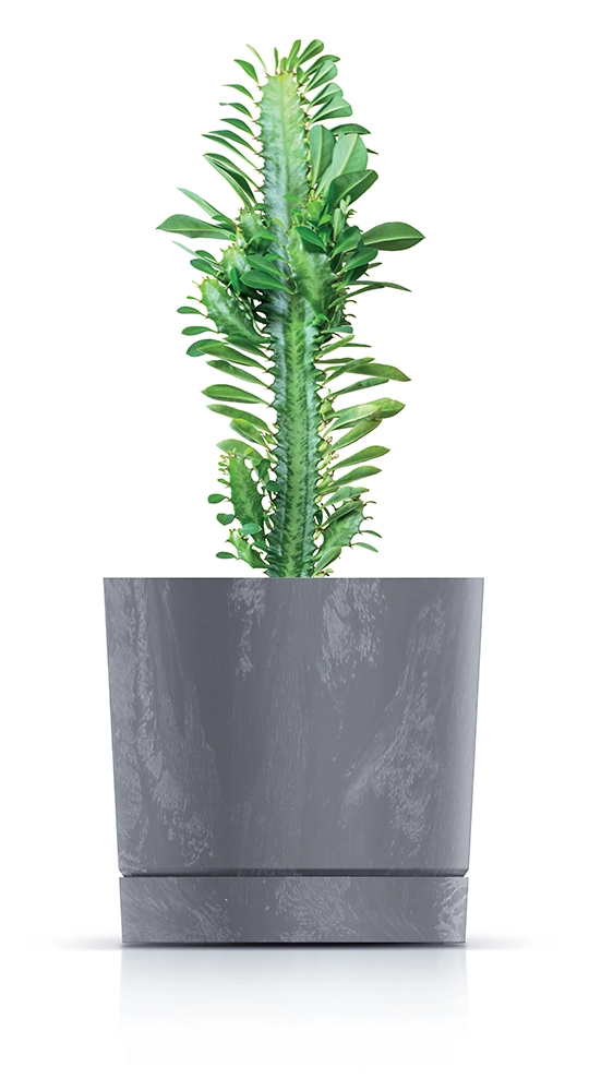 De TUBO-bloempot met een oppervlak dat doet denken aan ruw steen geeft je huis of terras een stijlvolle, industriële uitstraling. De lichte kunststof uitvoering maakt verplaatsen eenvoudig, maar is toch zeer duurzaam en geschikt voor dagelijks gebruik. De marengo-tint laat zich gemakkelijk combineren met diverse kleuren en materialen.