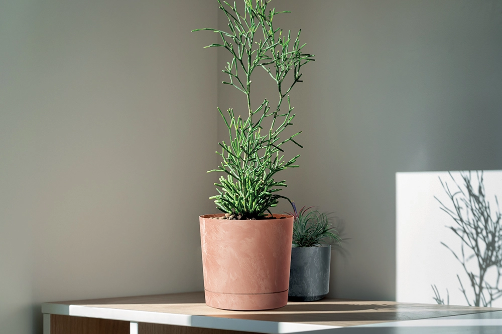 De matte afwerking met een industriële touch geeft planten en ruimte een premium uitstraling en laat zich eenvoudig combineren met hout, metaal en steen.