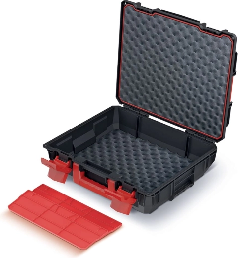 De praktische indeling met twee uitneembare vakken maakt het mogelijk het interieur van de koffer aan je actuele behoeften aan te passen. Dankzij de stevige afdichting is de inhoud beschermd tegen stof en spatwater, waardoor de koffer ook in zwaardere omstandigheden standhoudt. Het ergonomische kunststof handvat en de robuuste sluitingen zorgen voor comfortabel dragen en veilig afsluiten.