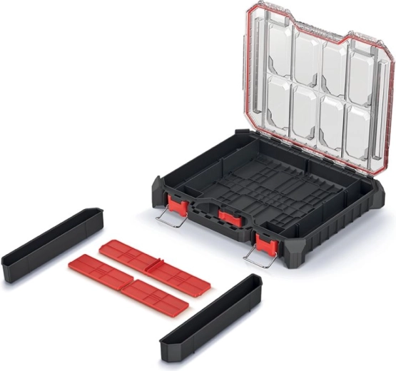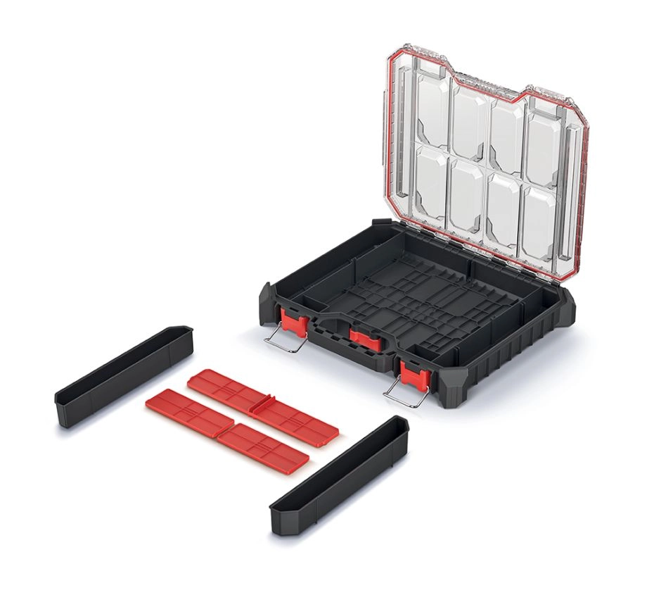 Houd uw gereedschap en kleine onderdelen perfect geordend. Deze organizer in zwarte kleur combineert compacte afmetingen met een robuuste constructie, ideaal voor zowel de werkplaats als onderweg. Het transparante deksel van polycarbonaat biedt direct zicht op de inhoud, terwijl de hoogwaardige afdichting beschermt tegen stof en vocht.