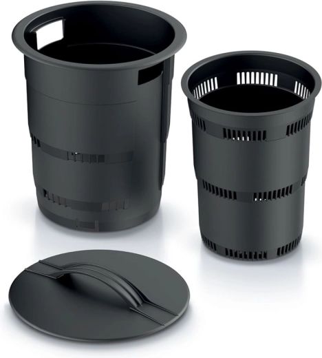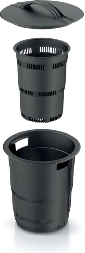 Dankzij de compacte hoogte van 25 cm en het afneembare deksel is het hanteren en bijvullen eenvoudig. Het robuuste kunststof is bestand tegen vocht en weersinvloeden, zodat de composteerder probleemloos het hele jaar door kan worden gebruikt. Geschikt voor groente- en fruitschillen, koffiedik, klein plantaardig afval en fijngestampte eierschalen.