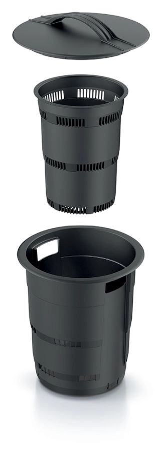 De geperforeerde wanden laten luchtstroming en de toegang van regenwormen toe, wat de afbraak van bioafval versnelt en de omliggende planten op natuurlijke wijze voedt.