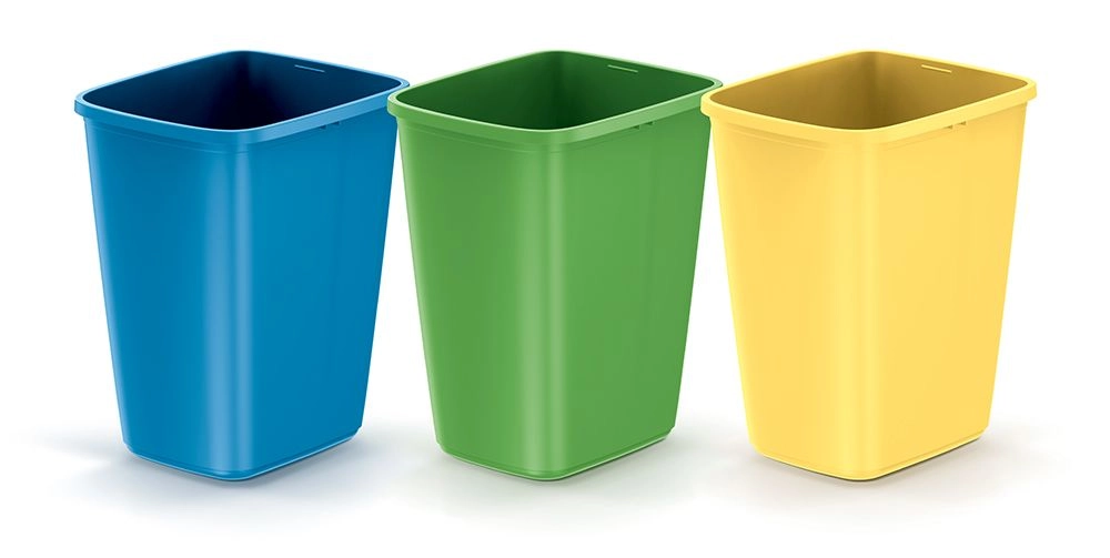 - Overzichtelijk scheiden: blauwe, groene en gele bak