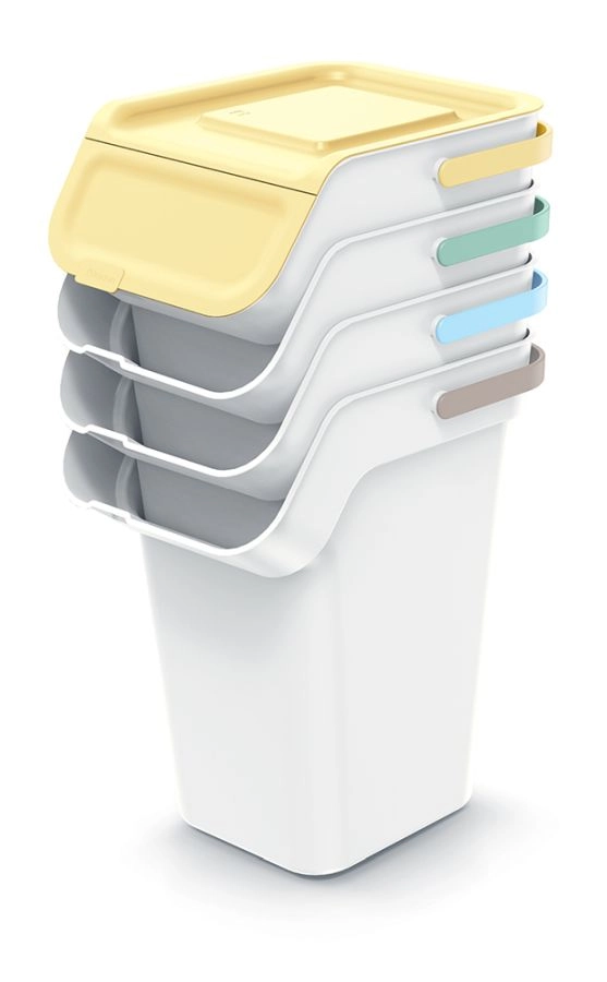 De set sorteervakken Keden Kaddi Q biedt een slimme en ruimtebesparende oplossing voor thuisrecycling. De modulaire constructie maakt het mogelijk de bakken in rijen of kolommen te plaatsen, zodat je ze eenvoudig aanpast aan de ruimte in keuken, voorraadkast of bijkeuken. Kleurgecodeerde deksels versnellen de oriëntatie bij het scheiden en ondersteunen een duurzame leefstijl.