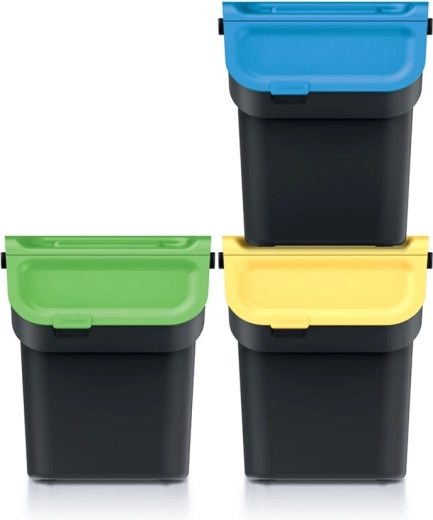 De bakken zijn te combineren naar behoefte – verticaal voor ruimtebesparing of horizontaal voor snelle toegang tot elke fractie. Geïntegreerde handgrepen en voorste klep-/opklapdeksels vereenvoudigen het hanteren en legen.