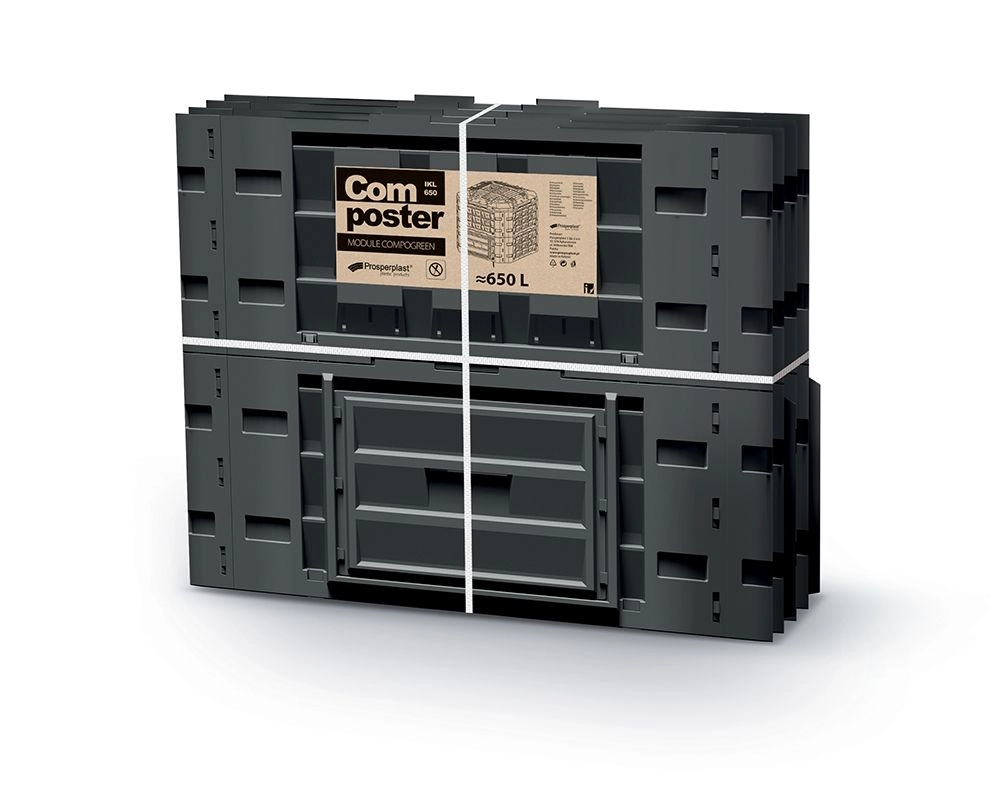 De COMPOGREEN VARIO composteerder 650 l is een robuuste oplossing voor middelgrote en grote tuinen. Modulaire, goed geventileerde panelen ondersteunen optimale vochtigheid en zuurstoftoevoer, wat leidt tot snellere vorming van hoogwaardige compost. Het bovenste deksel vergemakkelijkt het dagelijks toevoegen van gemaaid gras, bladeren of keukenresten, terwijl de onderste deurtjes comfortabel het uitnemen van gereed humus mogelijk maken.