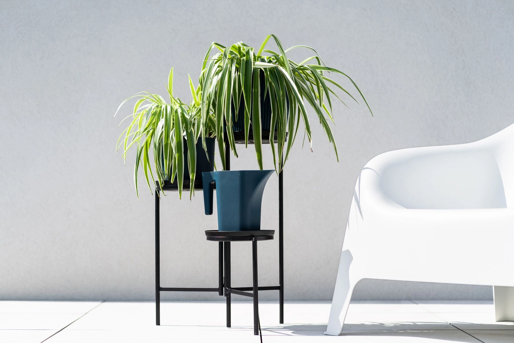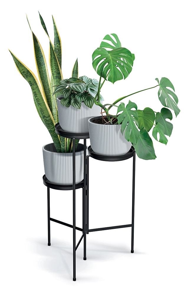 Dankzij de stevige metalen constructie en elementen van duurzame kunststof is de standaard stabiel en toch licht om te verplaatsen. De verhoogde niveaus besparen vloeroppervlak en verbeteren de luchtcirculatie en lichtdoorlatendheid voor elke plant. Het onderhoud kost slechts een moment – even afnemen met een vochtige doek is genoeg.