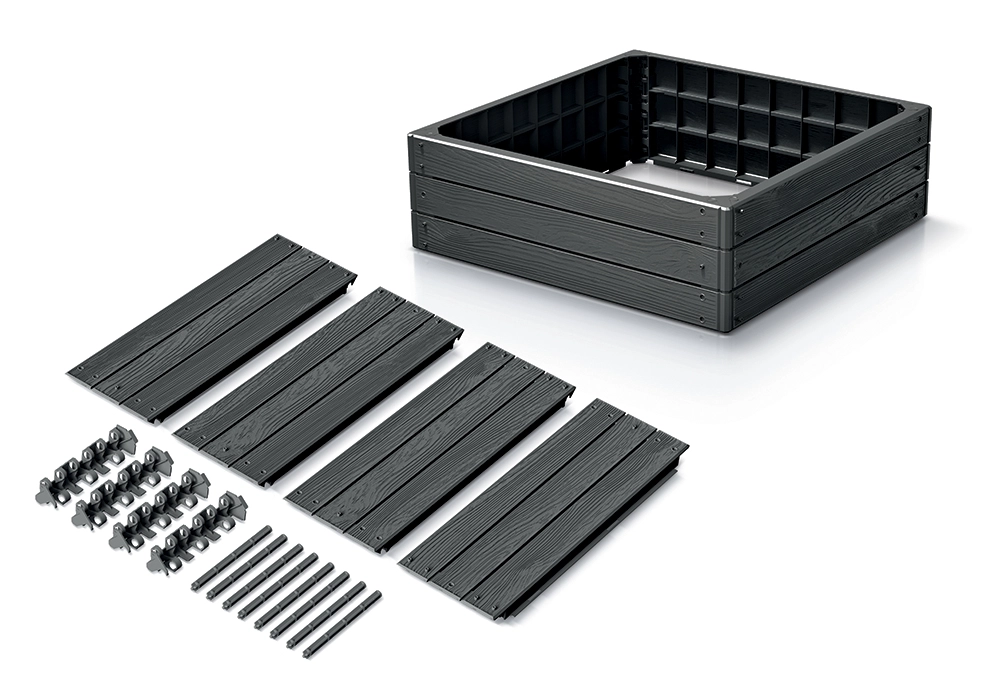 Creëer overzichtelijke en productieve bedden waar dan ook in de tuin. De verhoogde bak BASE WOODY blinkt uit met een realistische houtlook, maar is gemaakt van duurzaam kunststof dat niet roest, niet rot en geen verfbeurt nodig heeft. De verhoogde constructie verbetert de drainage, vermindert plagen en spaart je rug tijdens het werk.