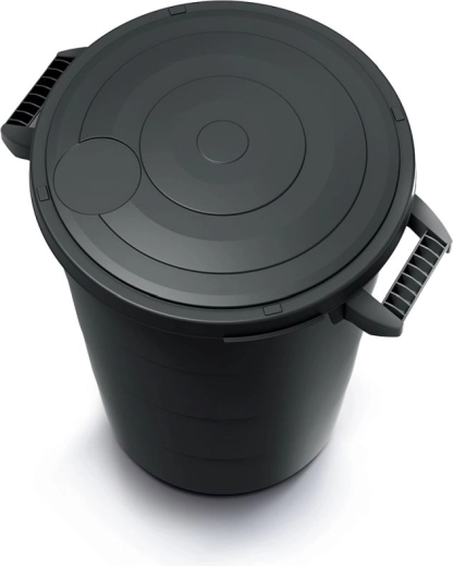 Praktische kunststof container met een inhoud van 80 liter, ideaal voor het opslaan van afval, compost, takken en regenwater. Gemaakt van duurzaam gerecycled plastic voor een lange levensduur, met zijhandgrepen voor eenvoudige hantering en een deksel tegen weersinvloeden. Perfect geschikt voor de tuin, bouwplaats en het huishouden.