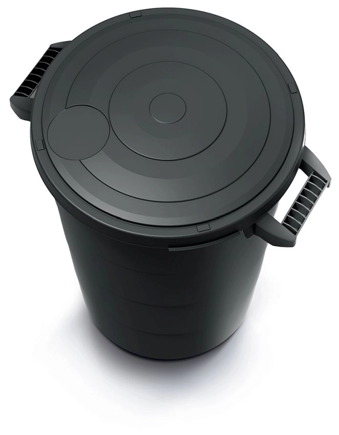 Deze robuuste container van 80 l biedt een betrouwbare en veelzijdige oplossing voor dagelijks gebruik. Het duurzame gerecyclede plastic zorgt voor een lange levensduur, het deksel beschermt de inhoud tegen regen en vuil, en de zijhandgrepen maken dragen eenvoudiger.
