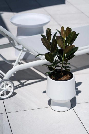 De HEOS-bloempot combineert een elegante, minimalistische look met doordachte functionaliteit. De lichtgrijze tint en het gladde oppervlak passen moeiteloos bij moderne interieurs, terrassen en balkons. Dankzij de binneninzet verbruikt u minder substraat en is het hanteren van planten veel eenvoudiger.