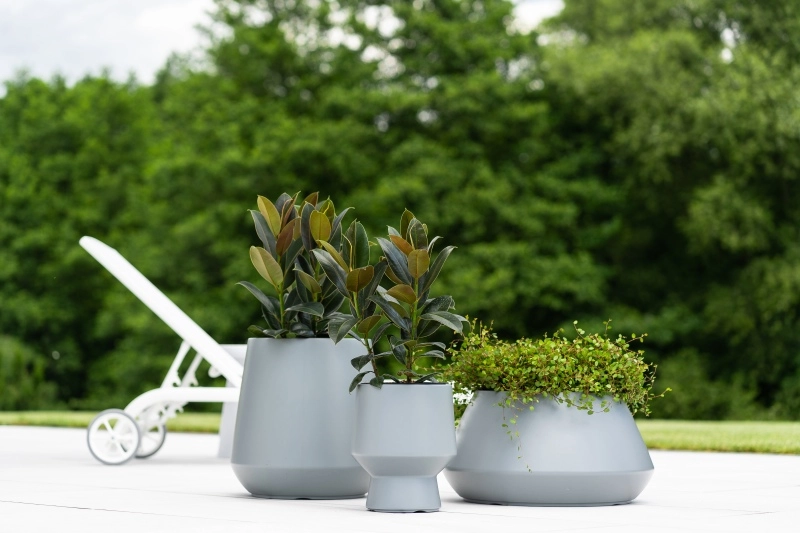 Strakke lijnen, een glad oppervlak en de lichtgrijze kleur passen bij elke stijl – van minimalistisch tot decoratieve interieurs en terrassen.
