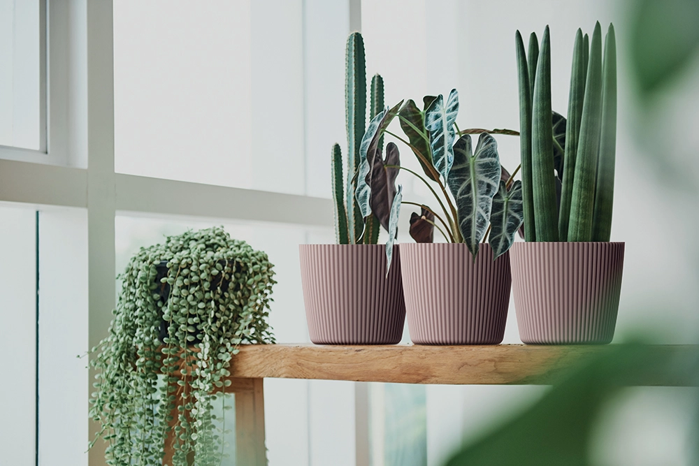 De verticale ribbelstructuur geeft de bloempot een moderne look en accentueert de schoonheid van planten, zowel binnen als buiten.
